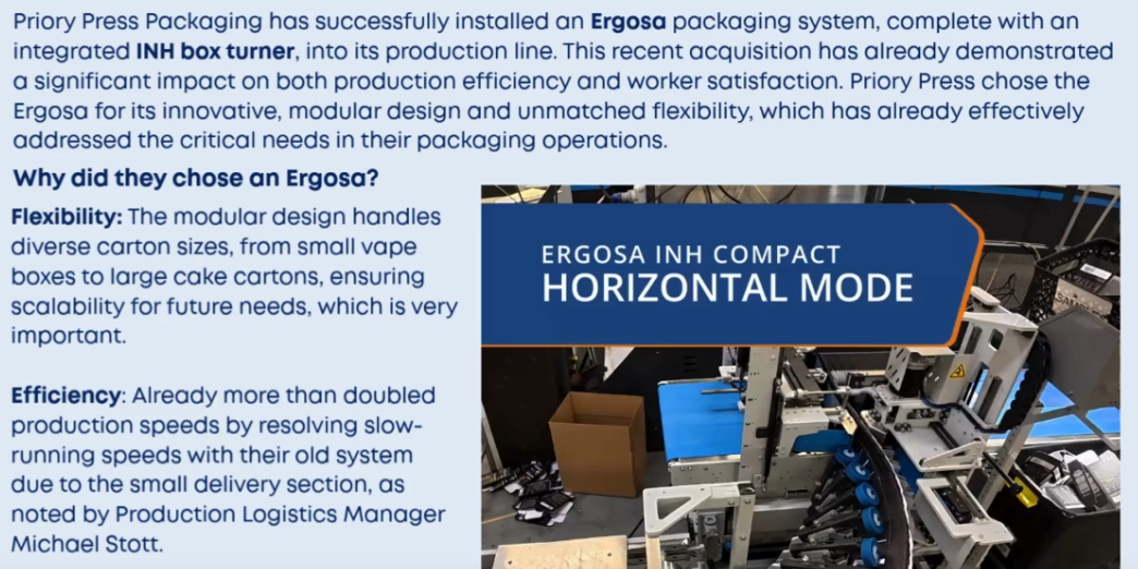 Nov172025Uncategorized Ergosa Semi-Automatic Packing System Category: UncategorizedBy Amber RowanNovember 17, 2025 Author: Amber Rowan Post navigationPreviousPrevious post:Easter HolidaysRelated PostsChristmas Holidays 2022December 15, 2022Pretty Impressive Printing!April 26, 2021Economy Minister Announces Investment for PPPSeptember 29, 2020Plant-Based Plant Nation!April 6, 2020FSC® Press ReleaseMarch 3, 2020NEAT! FreshFebruary 28, 2020
